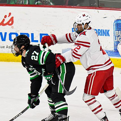 But the RedHawks were unable to generate the equalizer, and RMU tacked on a pair of empty-netters to seal it.